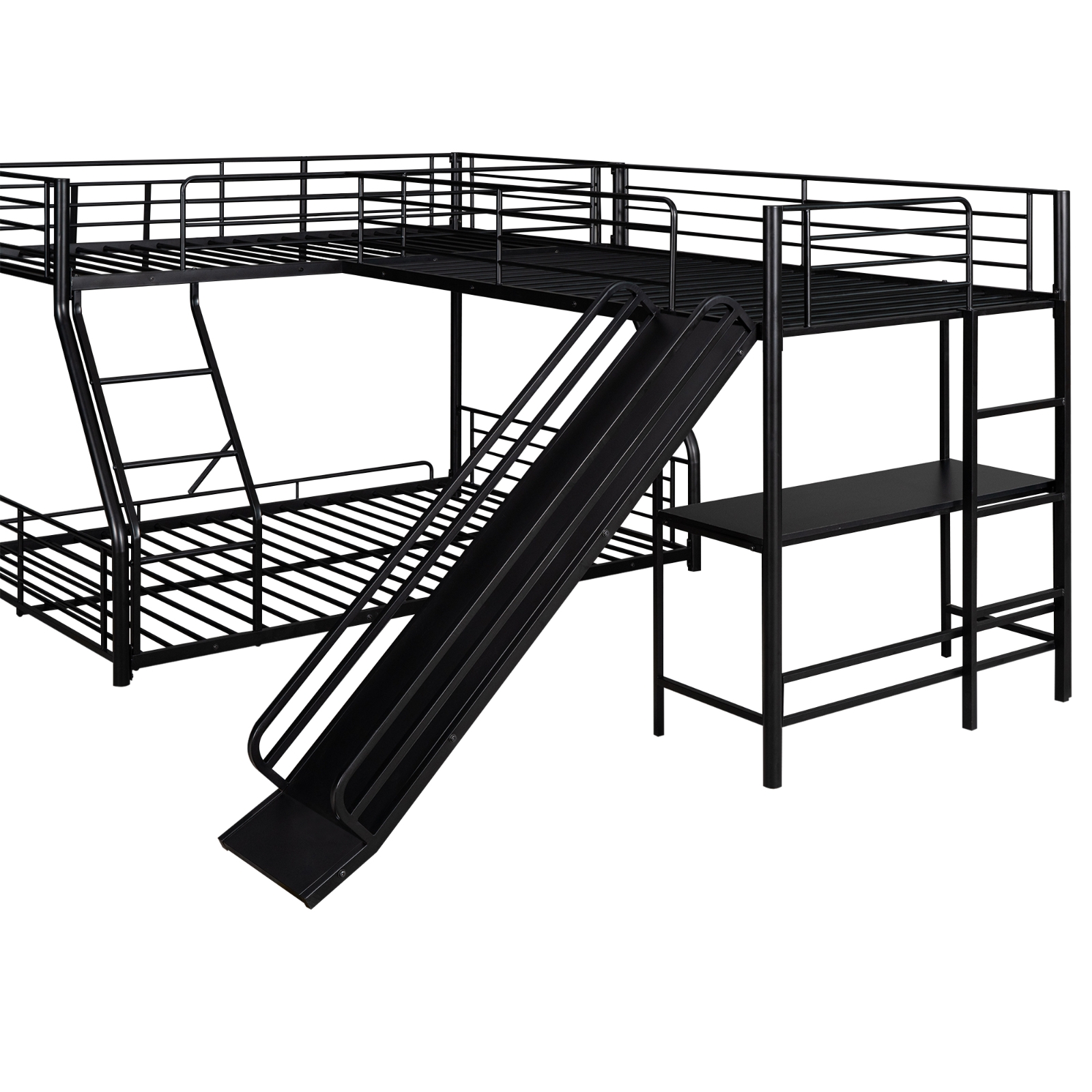 L-Shaped Twin over Full Bunk Bed with Twin Size Loft Bed,Built-in Desk and Slide,Black