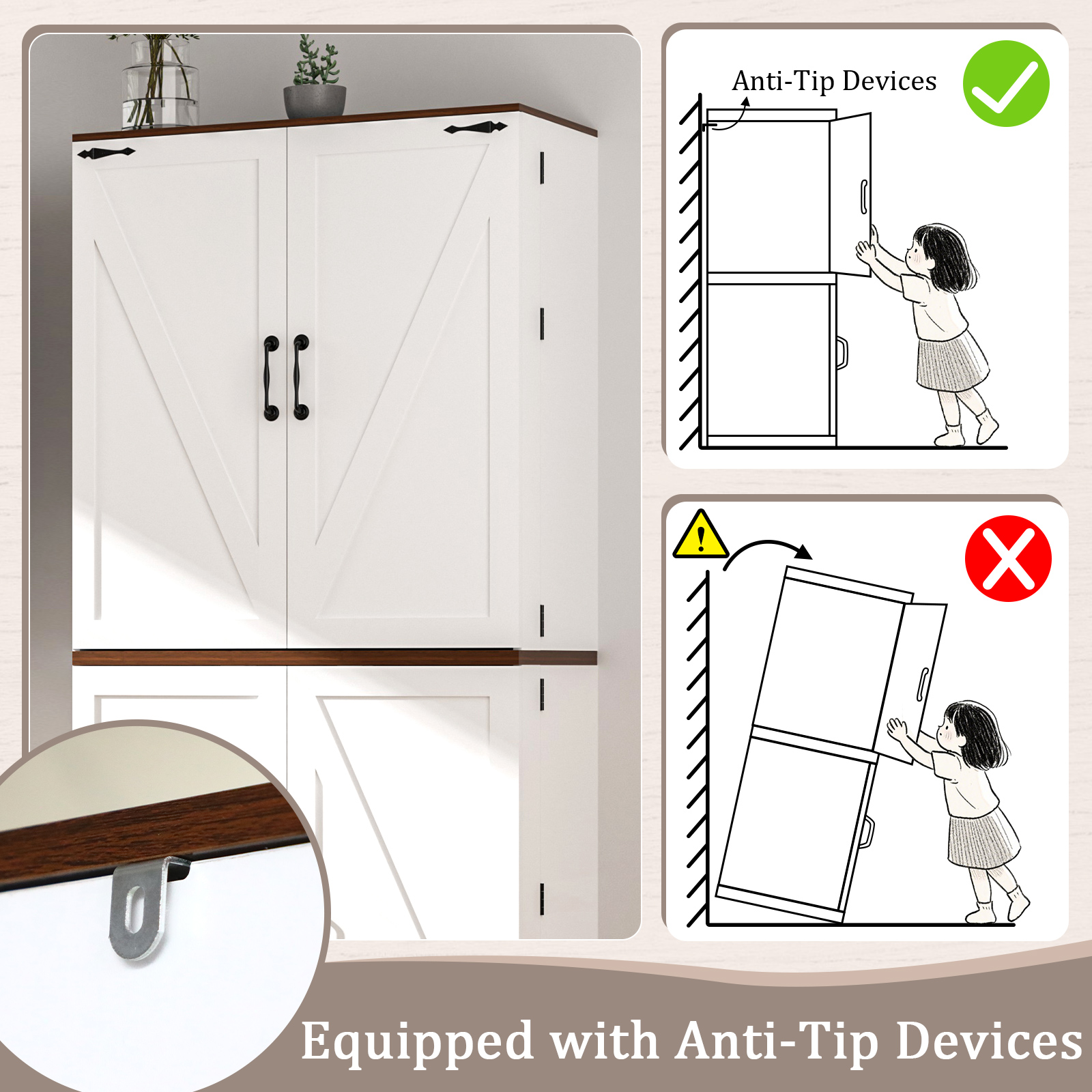 Tall Wooden Storage Cabinet With 4 Barn Doors, Adjustable Shelves And 12 Door Shelves 5-Tier Kitchen Pantry Storage Cabinet