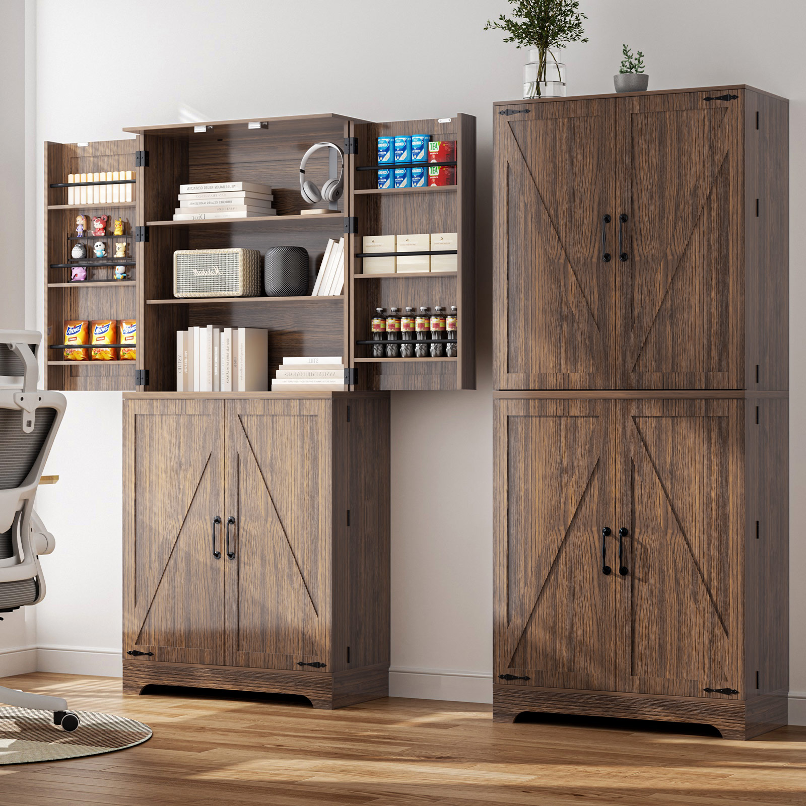 Home > Tall Wooden Storage Cabinet With 4 Barn Doors, Adjustable Shelves And 12 Door Shelves 5-Tier Kitchen Pantry Storage Cabinet